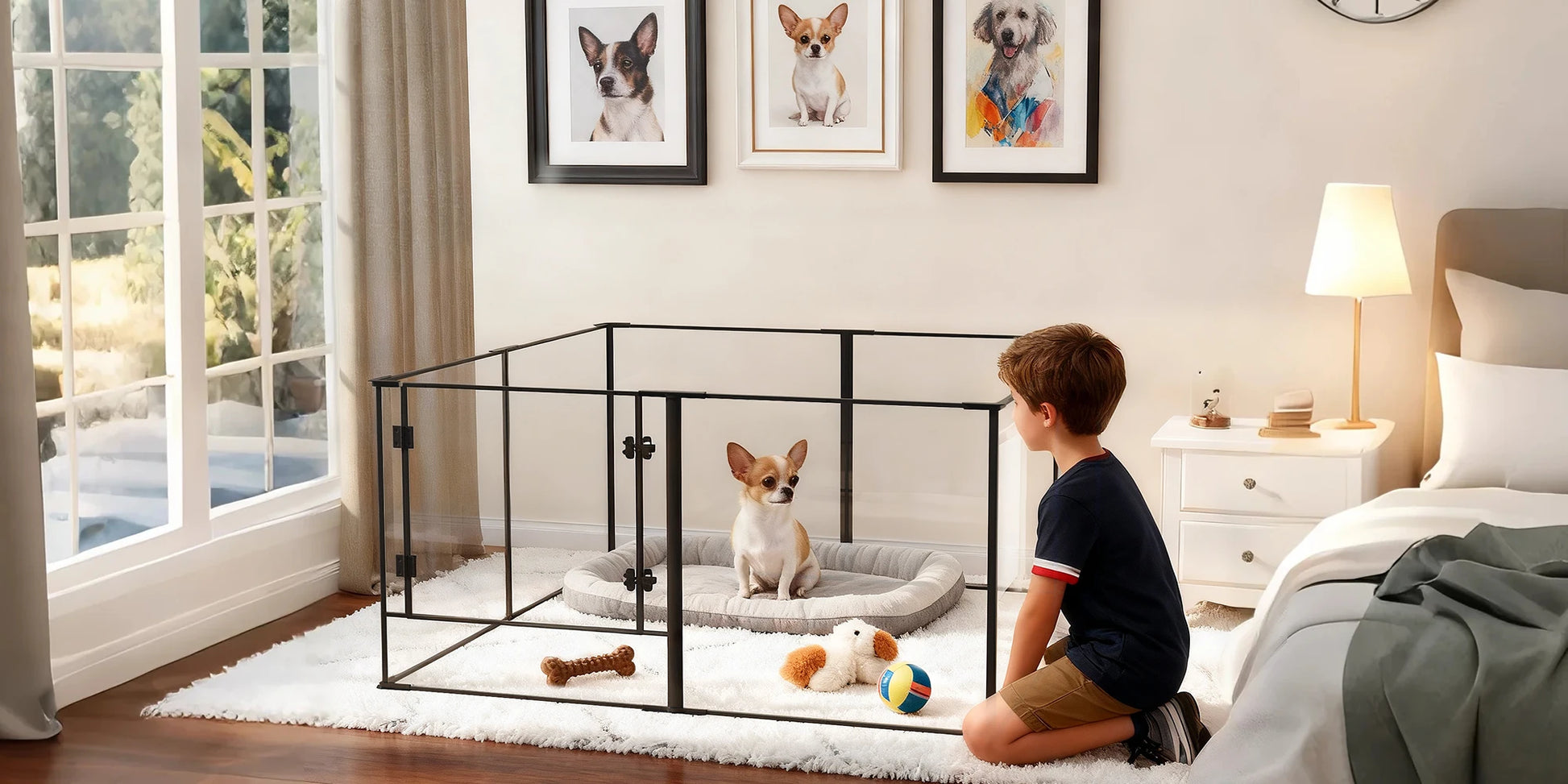 BORWAR Premium Acrylic Aluminum Pet Playpen Enclosure With Full Visibility
