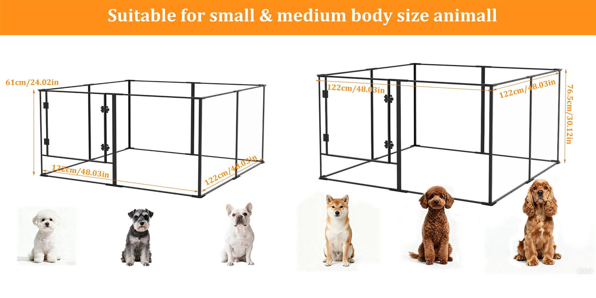 - Two height options—61 cm for small breeds and 76.5 cm for medium dogs—giving you flexible space to place beds, bowls, and toys, or to use as a safe whelping box.