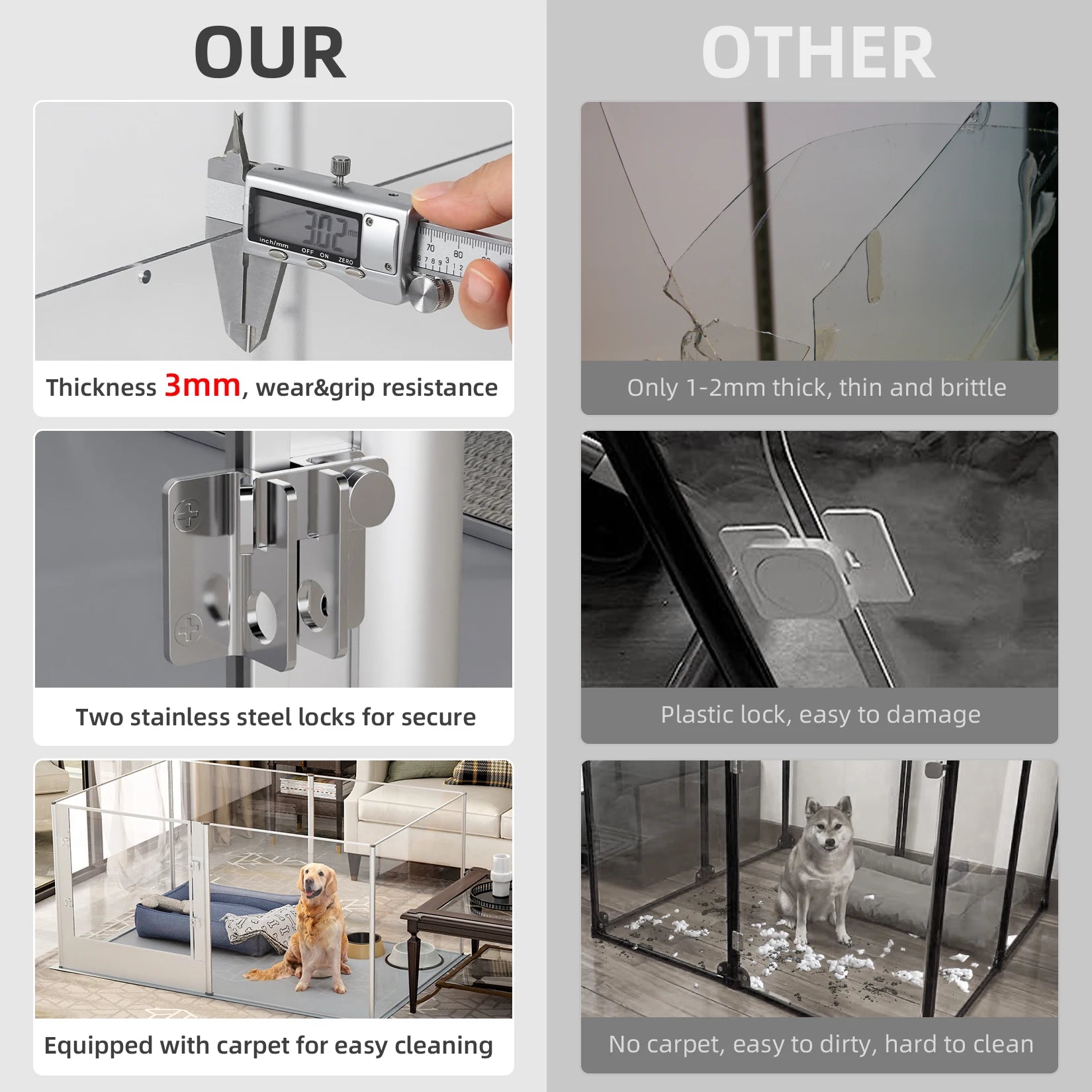 Give your canine companion a roomy, secure space with the BINGOPAW Acrylic Dog Playpen Fence for safe containment.