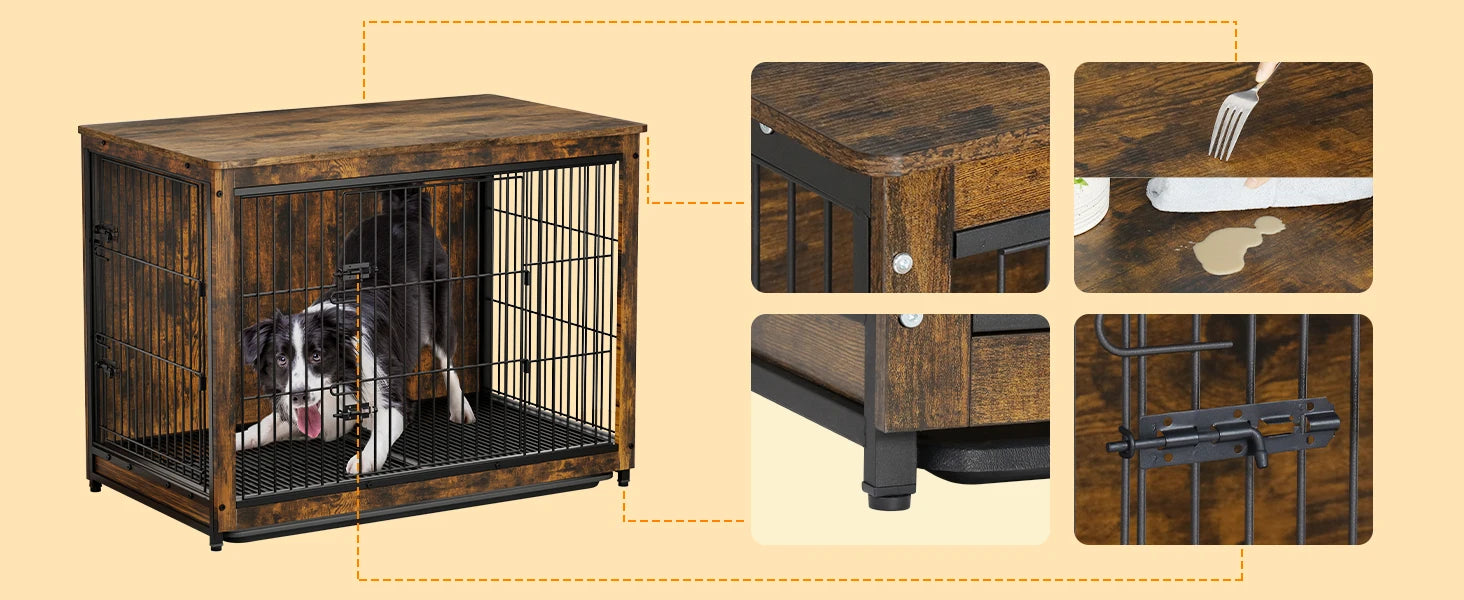 BORWAR Elevated Wooden Dog Crate End Table Kennel With Tray