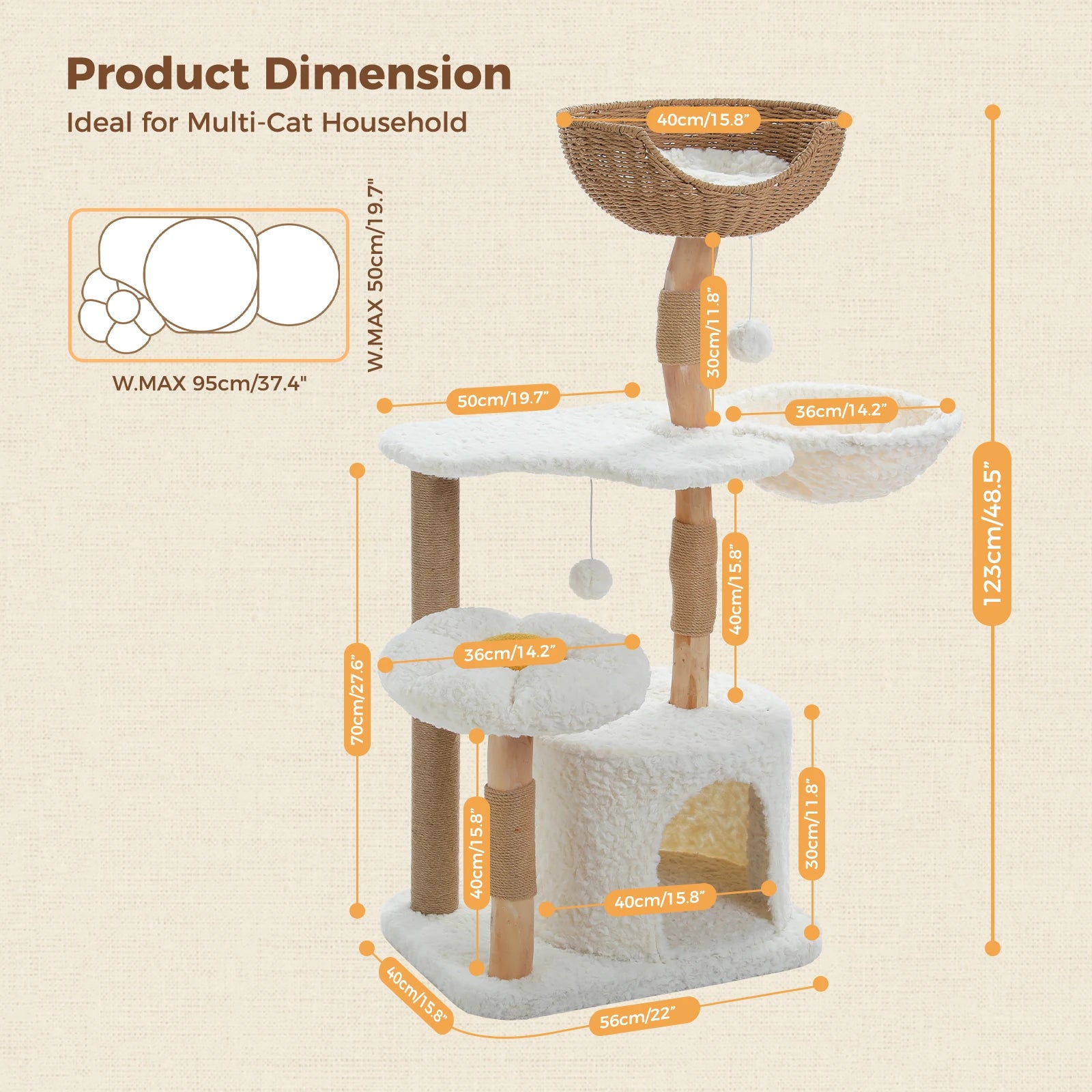- Immerse your cat in the unique flower cat bed and sleek white design, creating a visually striking addition to your modern living space that stands out from basic cat trees by combining elegance with practical play areas.