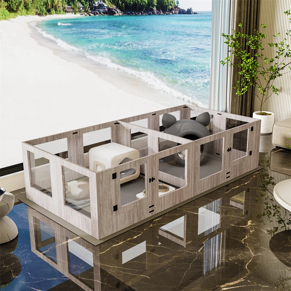 Create a safe, stylish whelping space with a two-room tempered glass playpen designed for puppies and small pets.
